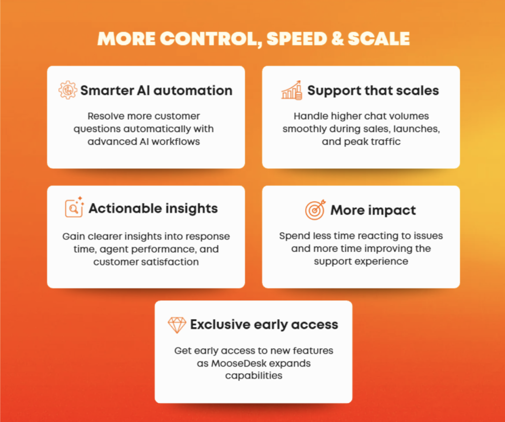 As you are already using MooseDesk, your current features will stay free forever after the pricing goes live. Nothing changes unless you choose to upgrade. And to thank you for being part of this journey from the very beginning, we prepared a special gift just for you: