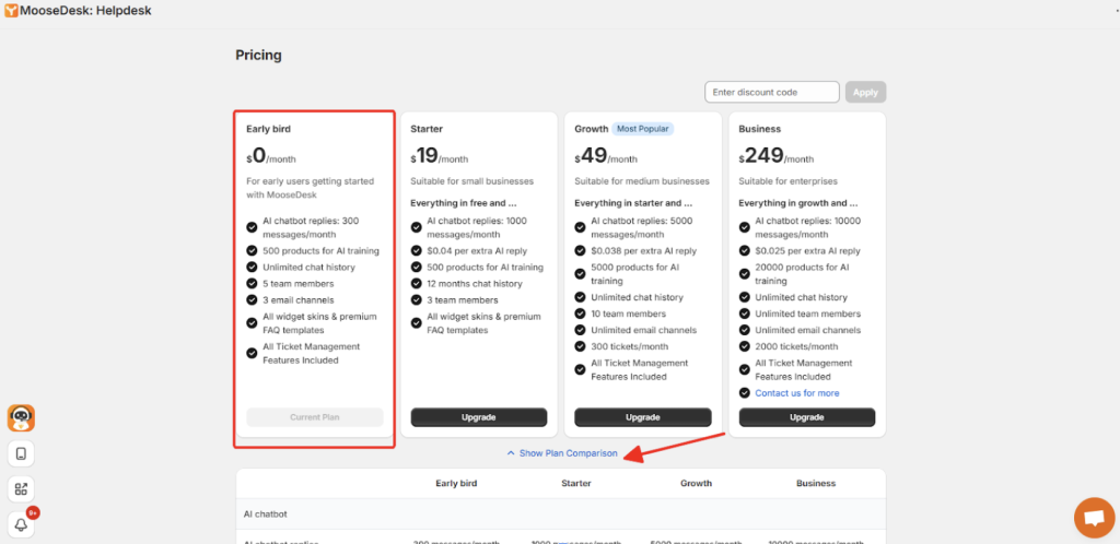Early Bird users are those who installed and used MooseDesk before the official pricing plan launch date. If you installed MooseDesk before our pricing went live, you’re automatically recognized as an Early Bird user. This is our way of thanking you for being an early supporter of MooseDesk!